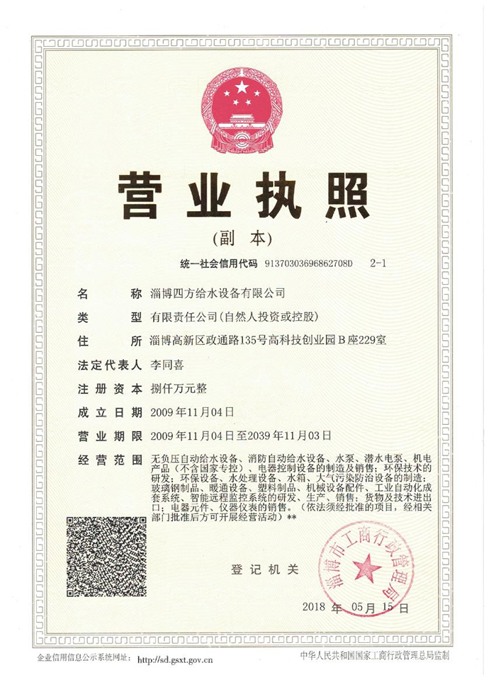 |自動供水設備|淄博四方給水設備有限公司 地址:淄博高新區高科技創業園